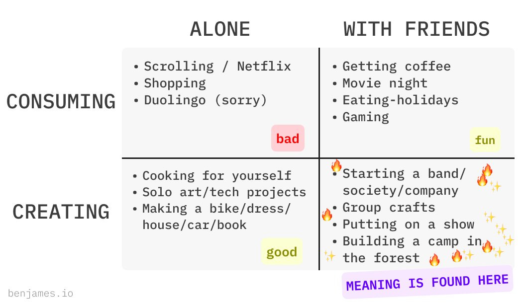 Sociologist Émile Durkheim calls this worship collective effervescence: a heightened emotional state resulting from simultaneous social participation. Active online engagement, particularly through social media, makes us feel like we're part of the "the group" and in order to be a functional member of this group, we can't miss out on any new viral media. Collective effervescence is similar to religion in that we are spreading messages (i.e. the social media gospel) to others in an attempt to grow the group. It’s one big ritual!